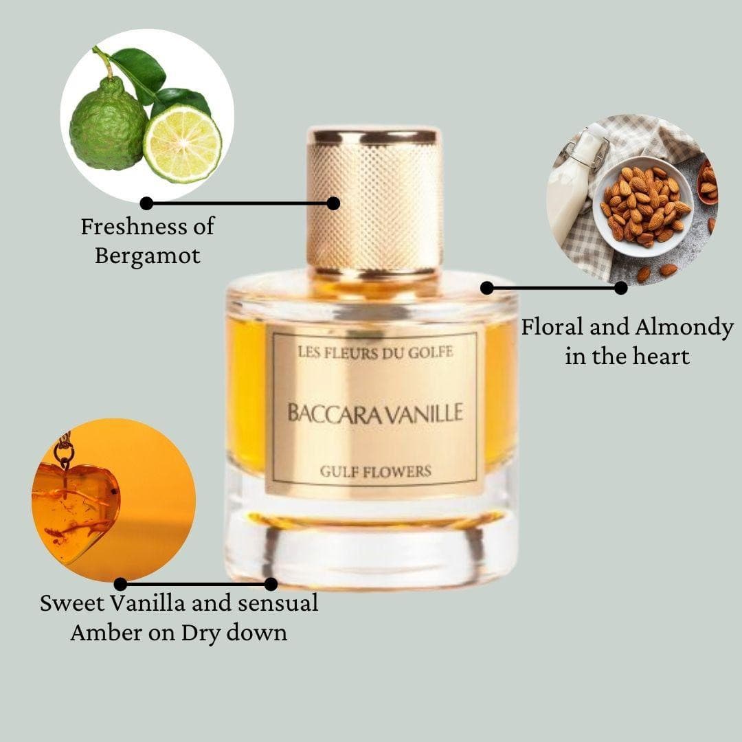 Baccara Vanille leaves behind a delicate and intoxicating aromatic trail, woven from the refined sweetness of vanilla and the resinous shades of amber. This wonderful aroma lingers, creating a long-lasting aromatic echo that is sure to captivate. This fragrance is a must-explore from the house of Les Fleurs Du Golfe.