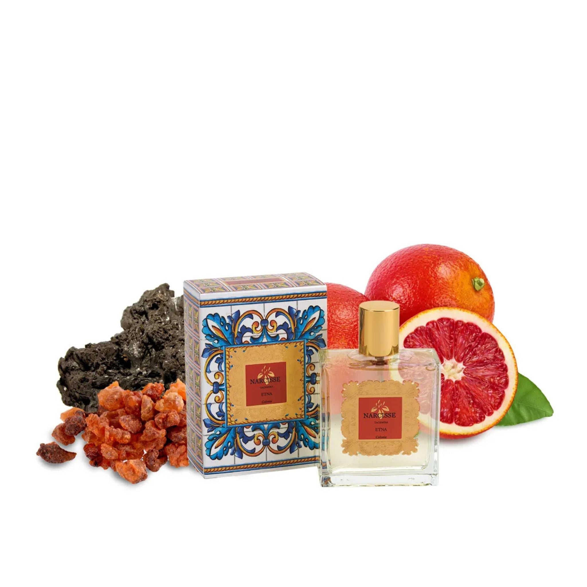Etna Narcisse Taormina is a fragrant homage to the iconic Etna volcano, embodying the diverse beauty of Sicily. This intricate blend captures the essence of Etna's volcanic landscape, combining the rich, earthy fragrance of moss with the herbal freshness of wild herbs thriving in volcanic soil. Citrus notes of bergamot, Sicilian sweet orange, and lemon open the fragrance, leading to a heart of maritime pine, incense, ash, and cistus labdanum. The journey concludes with a profound base of lavender, patchouli, vetiver, sandalwood, oakmoss, and white musk. Etna Narcisse Taormina offers a sensory exploration of Sicily's natural wonders, inviting wearers on a journey through the unique aromas that define this spectacular landscape.