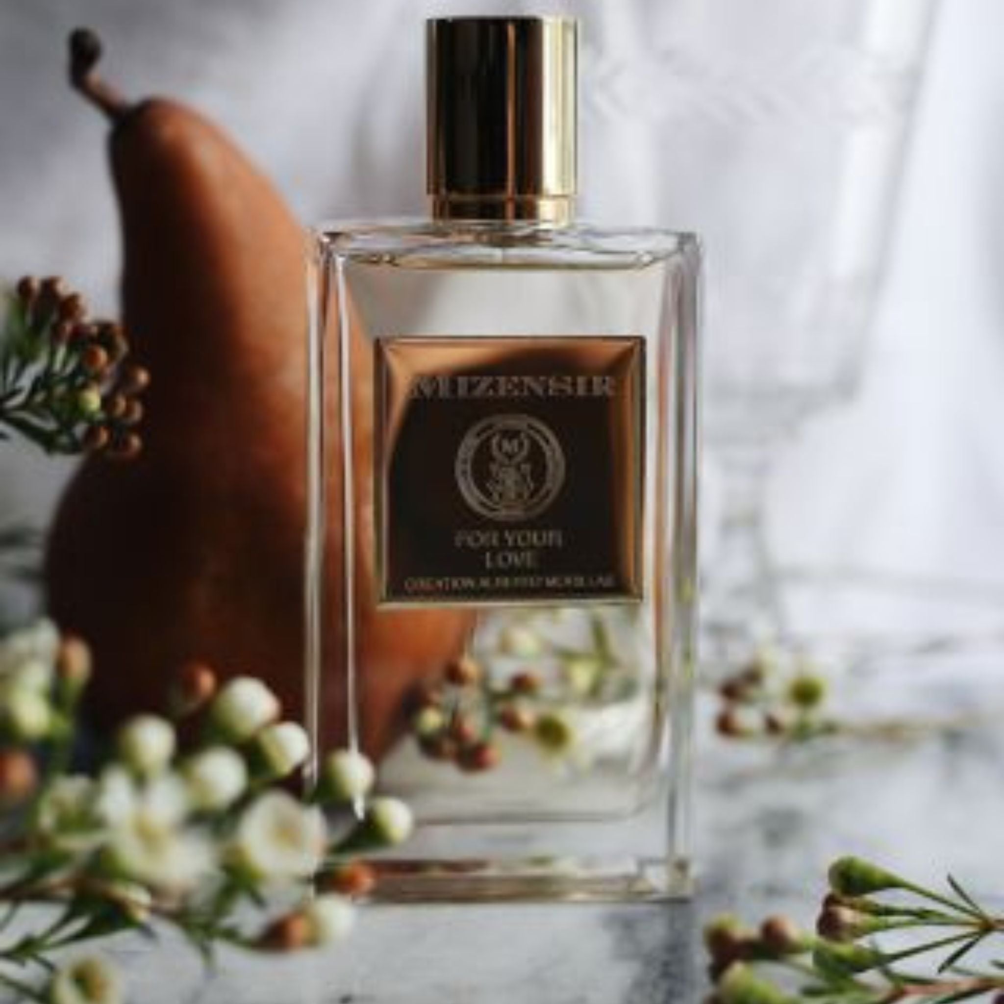 Inspired by the elusive scent of a kiss, "For Your Love" by Mizensir is the daring creation of a perfumer who sought to encapsulate the intimate aromas of skin, the musky warmth of the neck, and the fruity-powdery scent of lipstick. This fragrance delves into the art of seduction and attraction, invoking the ancient practice of perfuming oneself with musk to draw in love.