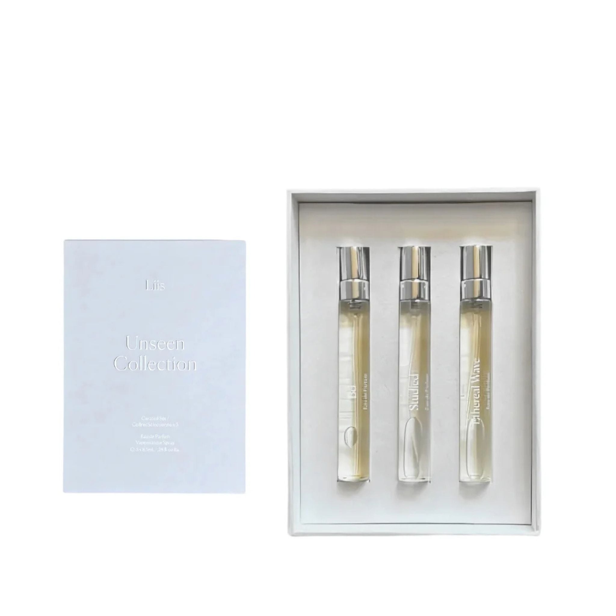 Perfectly sized for travel or discovery, the Unseen Scent Wardrobe is ideal for fragrance lovers who appreciate variety and the art of storytelling through scent. Experience the thoughtful craftsmanship of Liis in this exclusive, versatile set.